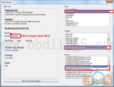 Mini Cooper dash MCU mask 0K50E read with Xprog 5.55 clone programmer.